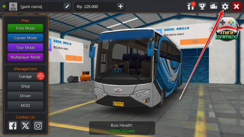 1.首先打开印尼巴士模拟器,点击右上方的齿轮进入设置