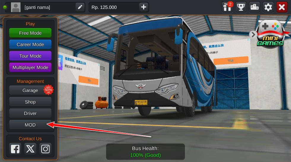 1.打开印尼巴士模拟器,在主界面点击Management下面的MOD