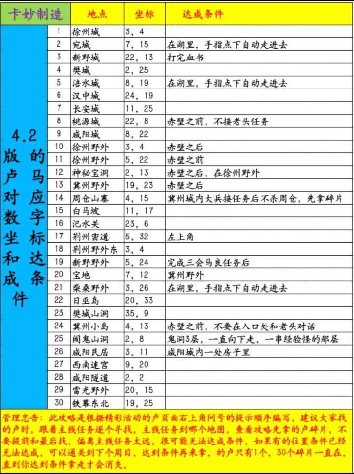 传说铭文和咒文是一定要刷的,地点培水东北右上方山洞(主线推到马超的时候,血判书那个山洞),夺回元神的活动是在汉中野外的两个山洞里,曹仁部队和贾诩部队,也可能两个同时出现,建议在10周目后去刷,把元神碎片兑换完了就行,精髓会慢慢溢出的,不用去兑换精髓