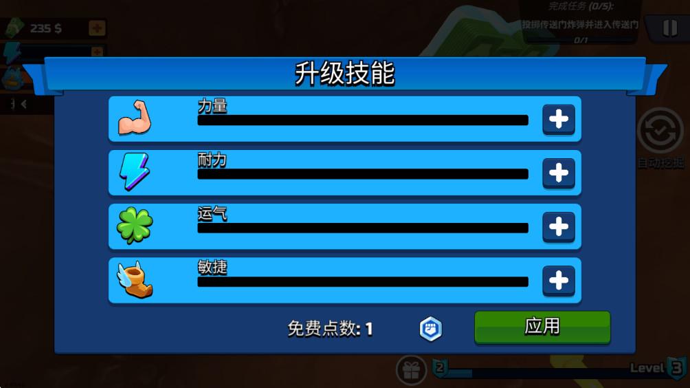 3.钞票可用来升级铲子,以及解锁更好的铲子和钻头。