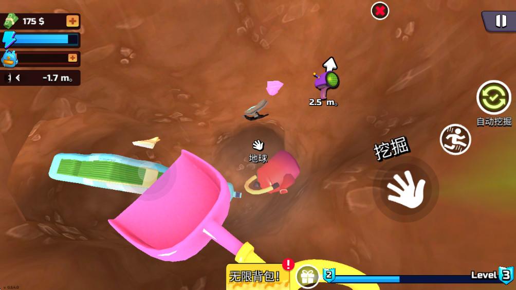 挖洞3D是一款充满冒险与探索的休闲游戏,你所挖掘的场所并非普通的土地,而是你家后院的地下世界,可能藏有数不尽的宝藏等待着你去发现。通过巧妙地使用锄头、铲子、榔头等工具,你可以在不同的土层中逐步深入,挑战更深的地下空间,最终挖掘出令人惊叹的稀世珍宝。