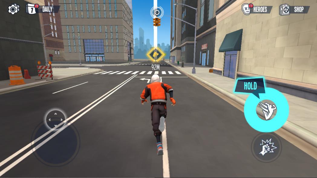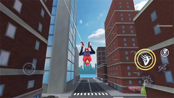 1.游戏的玩法很简单,只需在有限的生命值内击败游戏中的所有歹徒,左侧控制角色的方向,而右侧则是各种技能键,着重介绍一下所有伙伴都好奇的蛛丝发射,长按图示键位吐丝,松开键位时则是收回蛛丝,要想在空中自由摇荡,需要搭配方向键一起操作。