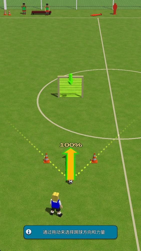 4.拖动来选择踢球方向和力量,把球踢到门框内。