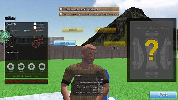 9.然后与邻居讨价还价,并以最低价购买到汽车(邻居提供的证书可能会造价,你只有找到这些错误才可以砍价哦)。最后购买到汽车后,你就可以将汽车放在自己的汽车店内进行交易、升级来赚取金钱。