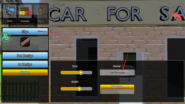 5.点击sign,然后在name框中输入你的汽车店名称,填写好点击update