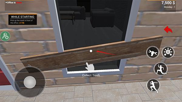 2.首先我们需要先将门店附近的垃圾处理掉,靠近立即后点击白色手指即可清除。