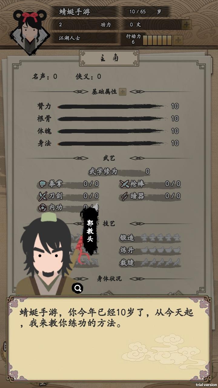 4.然后再返回去选择练武,先把我们的外功拉满。