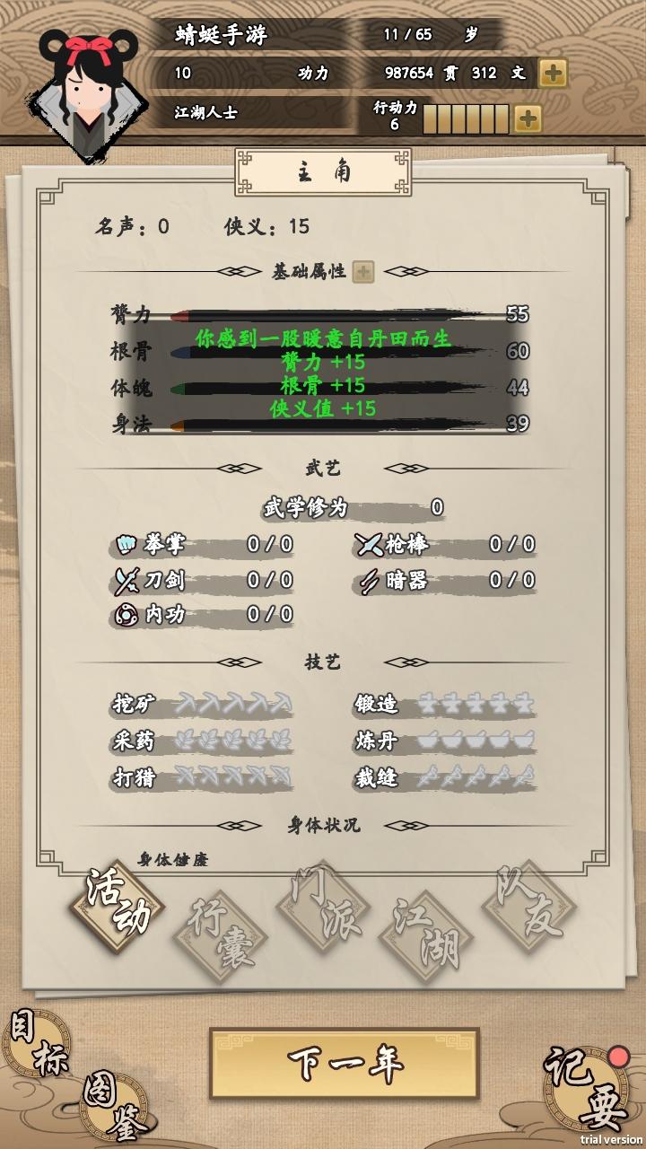3.因为我们行动力使用也不会少,你可以随便点,然后增加我们的功力。