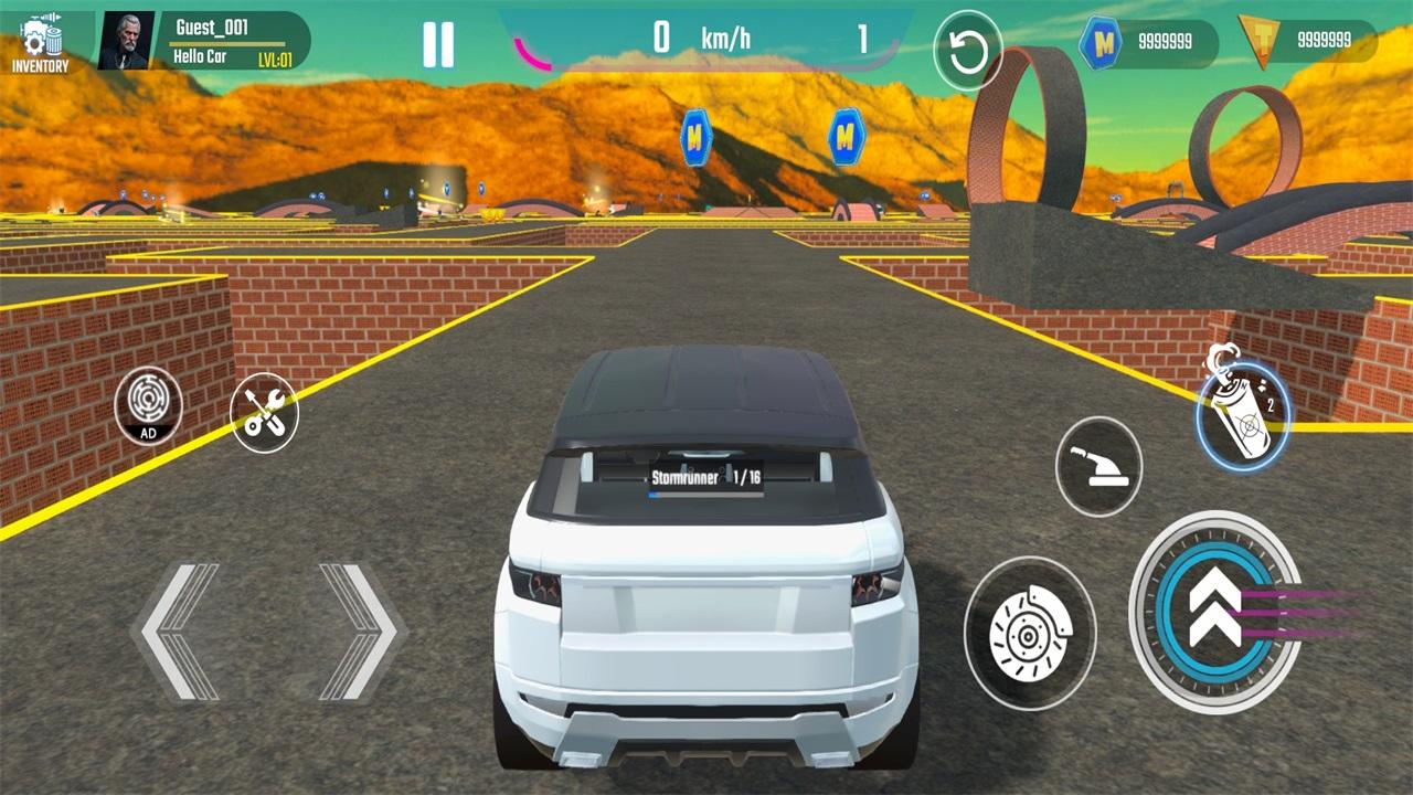 3.进入游戏后驾驶车辆,左下角为方向转向,右下角为油门。