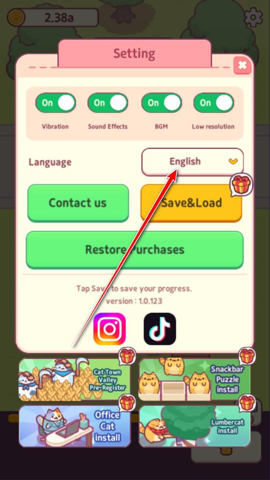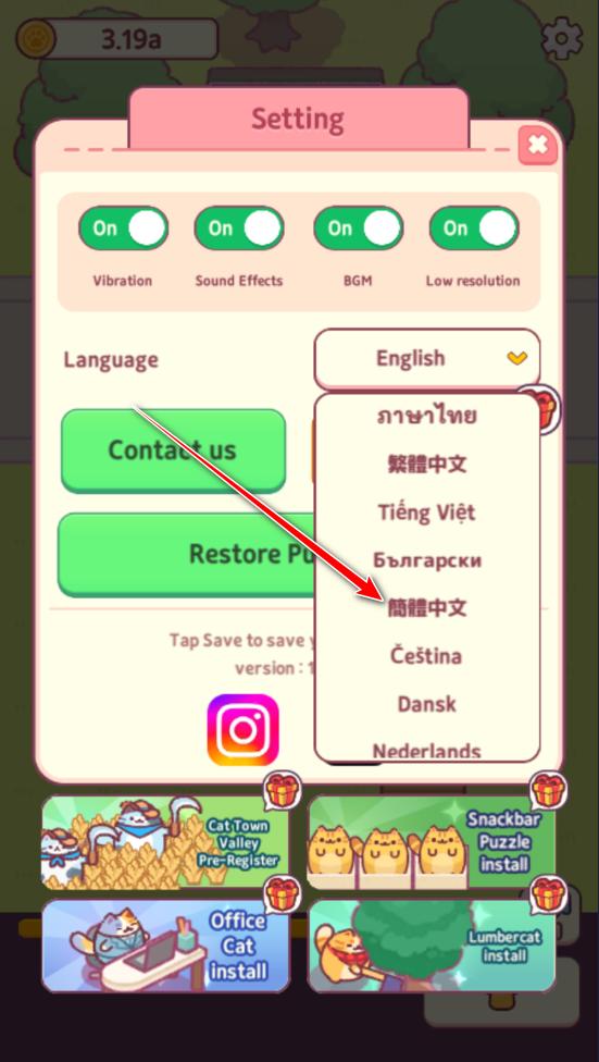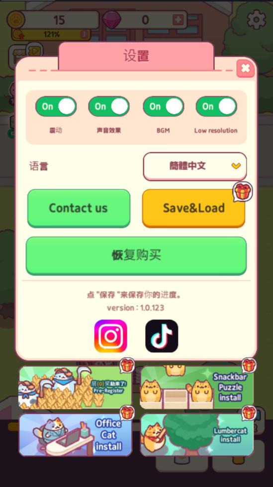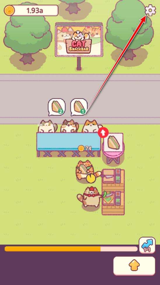 1、打开猫咪小吃店游戏,点击右上方的设置