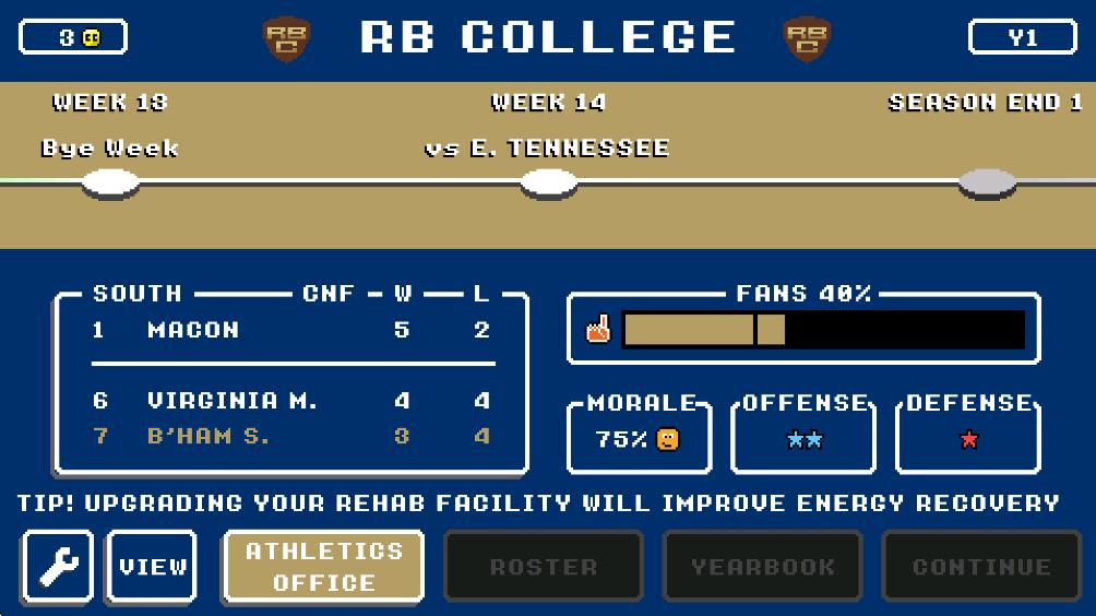 复古橄榄球学院是一款融合了怀旧元素与现代竞技感的像素风格体育游戏,你将带领一支虚拟橄榄球队,进行激烈的场上对抗,挑战各种极具挑战性的对手。你需要精心设计球员的站位、安排每一次传球与进攻,并合理调整防守策略,确保团队在关键时刻发挥出最佳水平。每个球员都有独特的属性,如何利用他们的优势将决定比赛的走向,体现出更多智慧而非单纯的操作技巧。