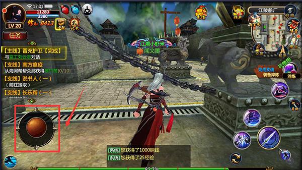 1.在进入游戏后可手指按住左侧感应区移动摇杆进行角色移动操作。