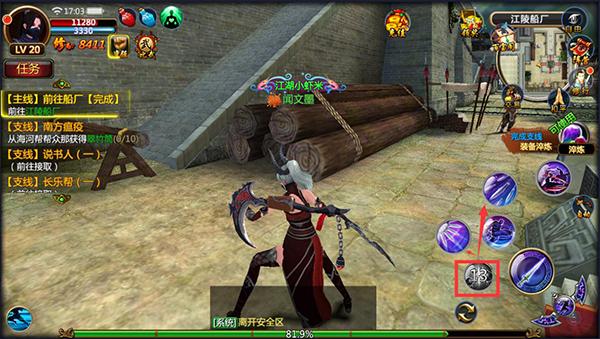 在遇敌时可以点击右侧普通攻击键进行普通攻击并且可以释放技能对敌人造成大量伤害,但使用技能会消耗相应的内力值(蓝)并且会有CD(技能冷却)时间,不同的职业角色的攻击模式和技能效果各有千秋,老铁们可以根据战况选择技能释放的时机。