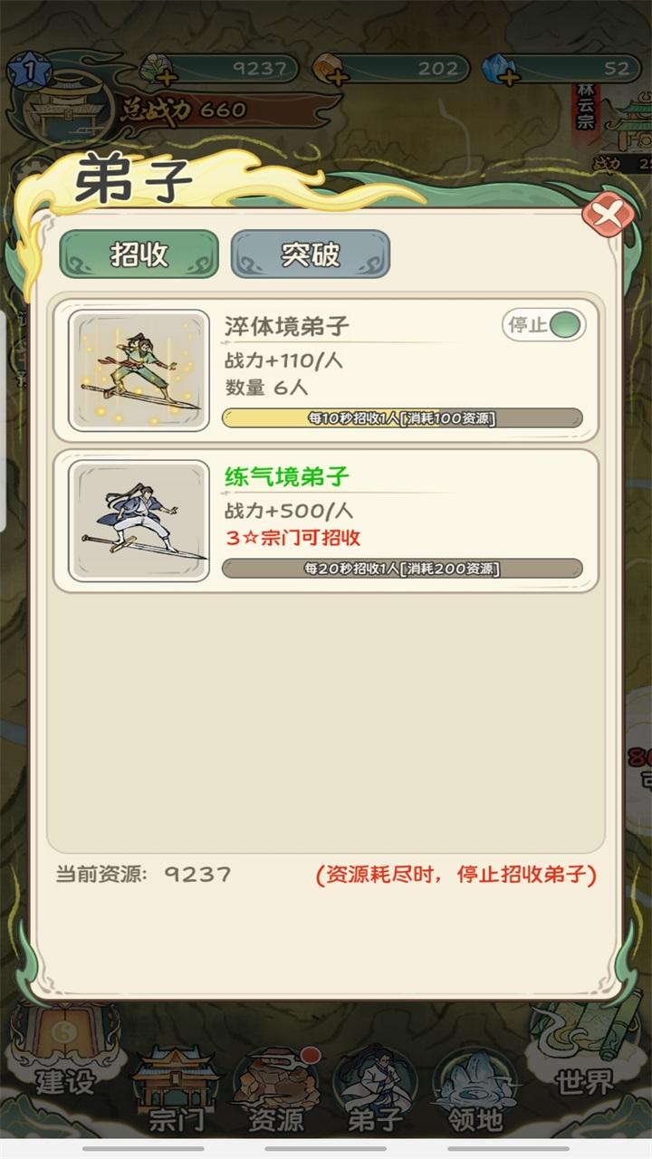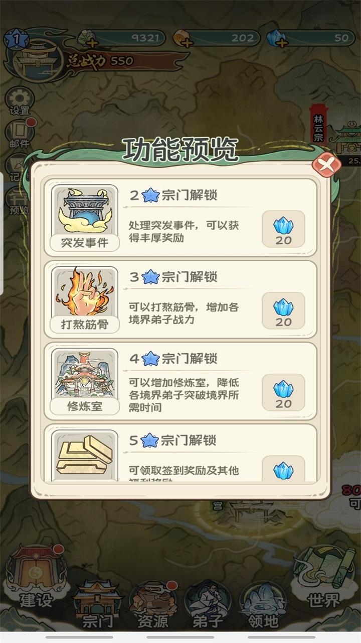 7.了解完这些之后我们就可以在这个修仙大陆中进行修行,提升宗门的实力了。
