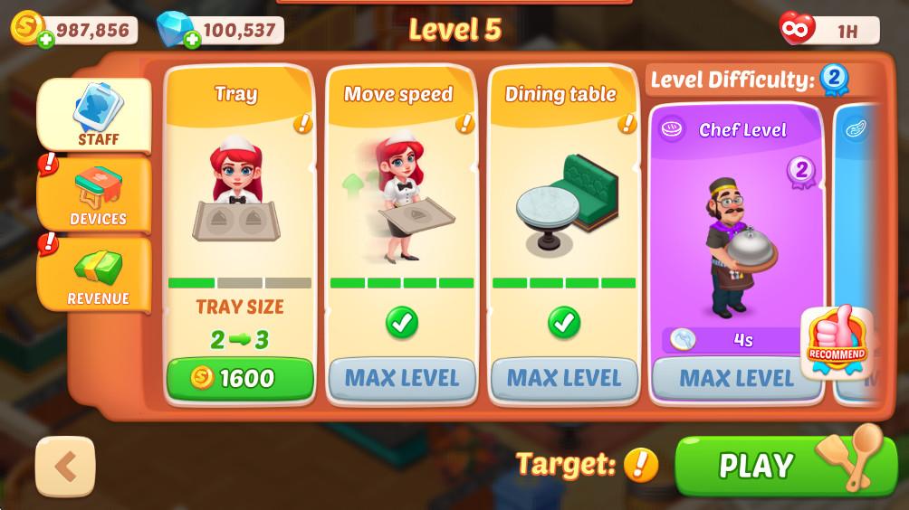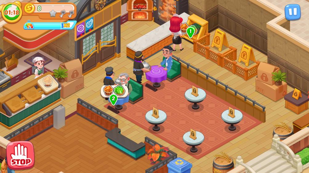 4.点击餐桌上的“厨师”标志,再根据客人所需配菜,点击配菜位置再点击客人,依顺序送达。