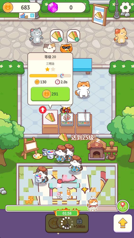 小猫餐馆是一款充满萌趣与创意的模拟经营游戏,在这款游戏中,你将成为一名猫咪主题餐厅的老板,目标是通过精心的烹饪和优秀的管理,将你的餐馆打造成猫咪们的天堂,你不仅要根据不同猫咪顾客的口味制作美味的餐点,还需要合理规划餐厅的布局,提升设备,招聘并培训员工,为猫咪顾客提供优质的服务。