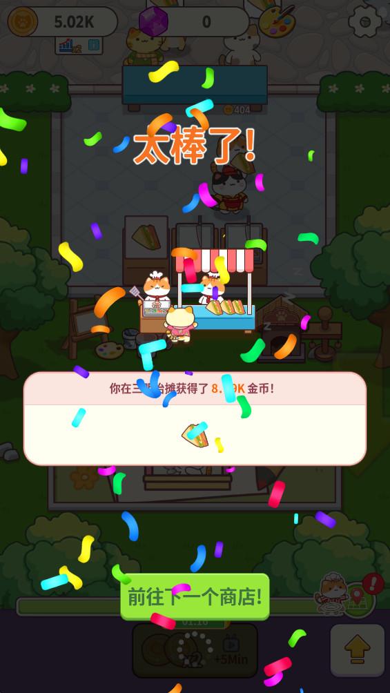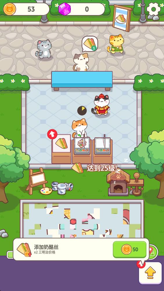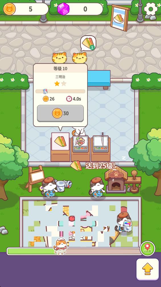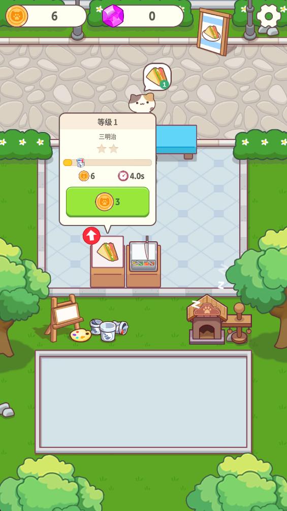 6.点击下方黄色的箭头,这里可以在收获一只猫猫,可以帮助你制作三明治。
