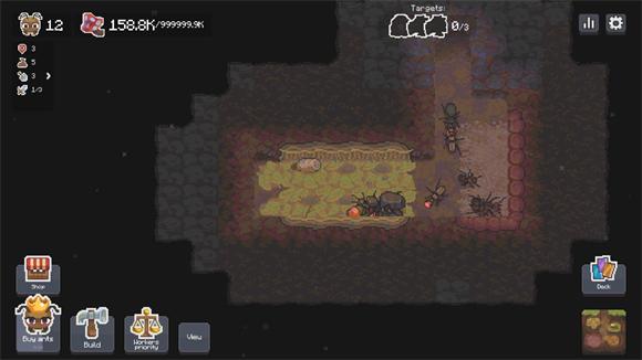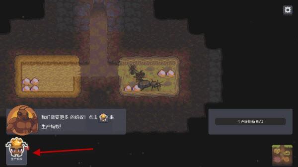 2.点击左下角的生产蚂蚁按钮,生产更多的蚂蚁。