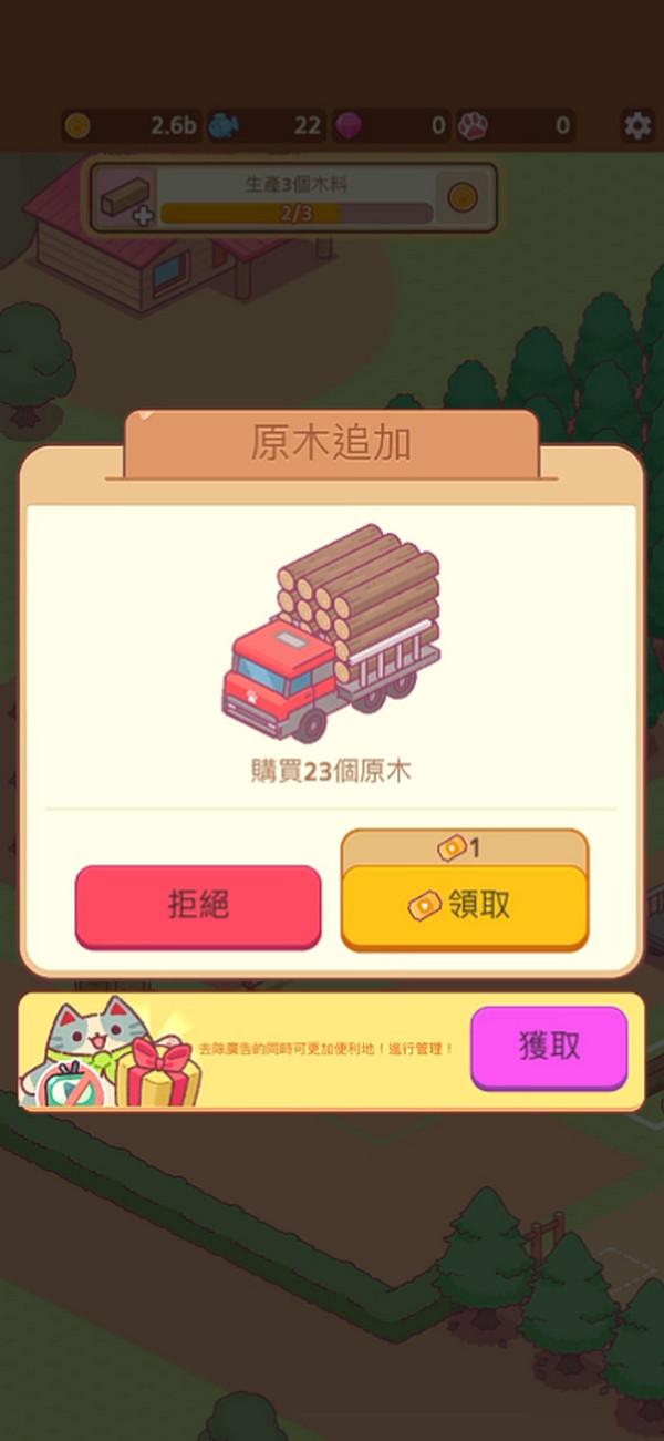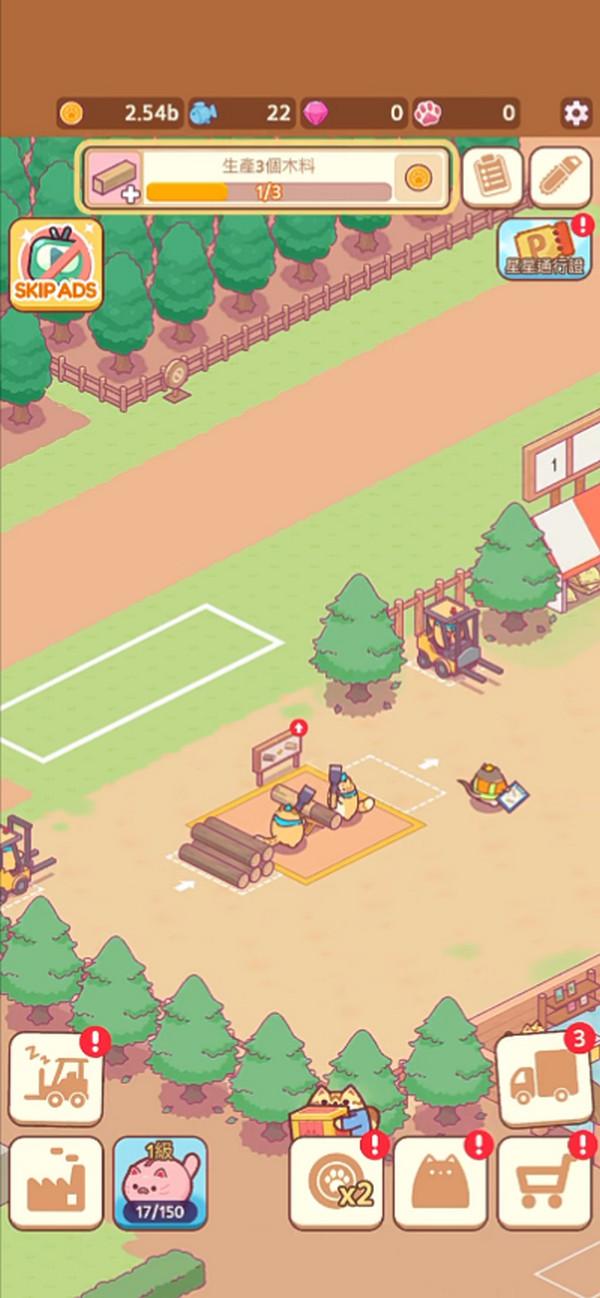 猫咪伐木工是一款充满可爱元素与战略挑战的模拟经营游戏,在这款游戏中,你将进入一个猫咪主导的森林王国,成为一位伐木工坊的老板,带领一群精力充沛的猫咪们开展一场木材帝国的建设之旅。你的任务是管理伐木、加工、运输和建造的各个环节,确保猫咪们在你的指挥下高效工作,逐步扩大你的工坊并建立一个繁荣的木材帝国。