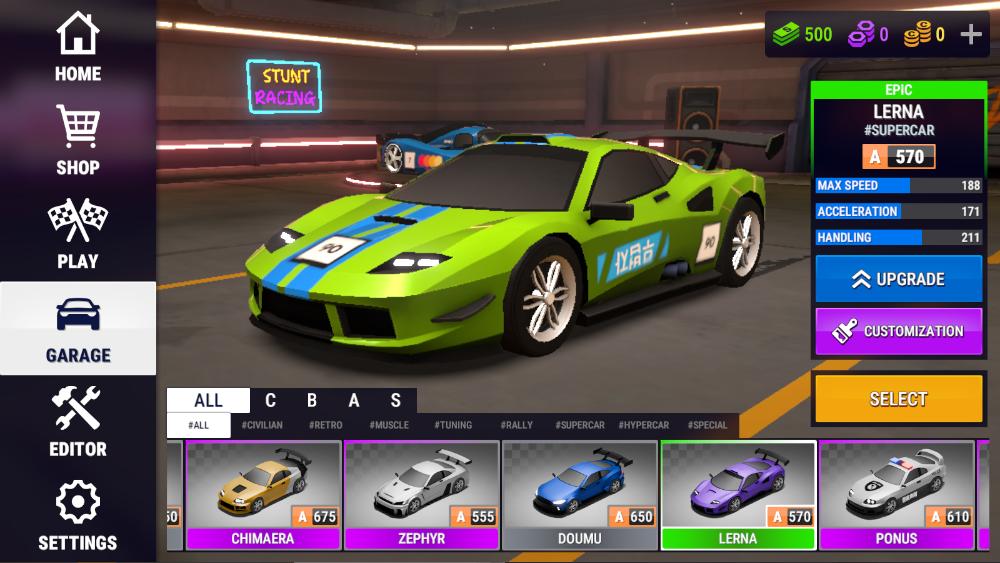 1.打开游戏后,玩家可以先选择一辆自己喜欢的车型进行游戏。