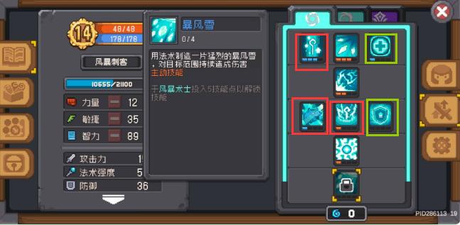 加点方式的话主要去点正中间的BUFF技能和左侧的被动技能,右侧的两个被动技能是属性和抗性的增加,提升效果一般,前期点一下后期可以洗掉。红框为必加满的核心技能,绿框不加,其他主动技能看自己使用是否顺手来加