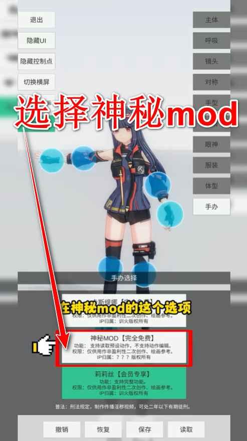 11.支持撤退、回复等操作,也能够保存当前人物形象,并且可读取默认自带的数十种姿势。