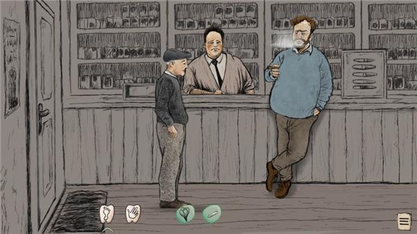2.然后进入游戏,这里有足印和手掌,点击手掌可以和人物进行对话,还可以拿东西,足印可以在对话完成之后进入下个剧情;