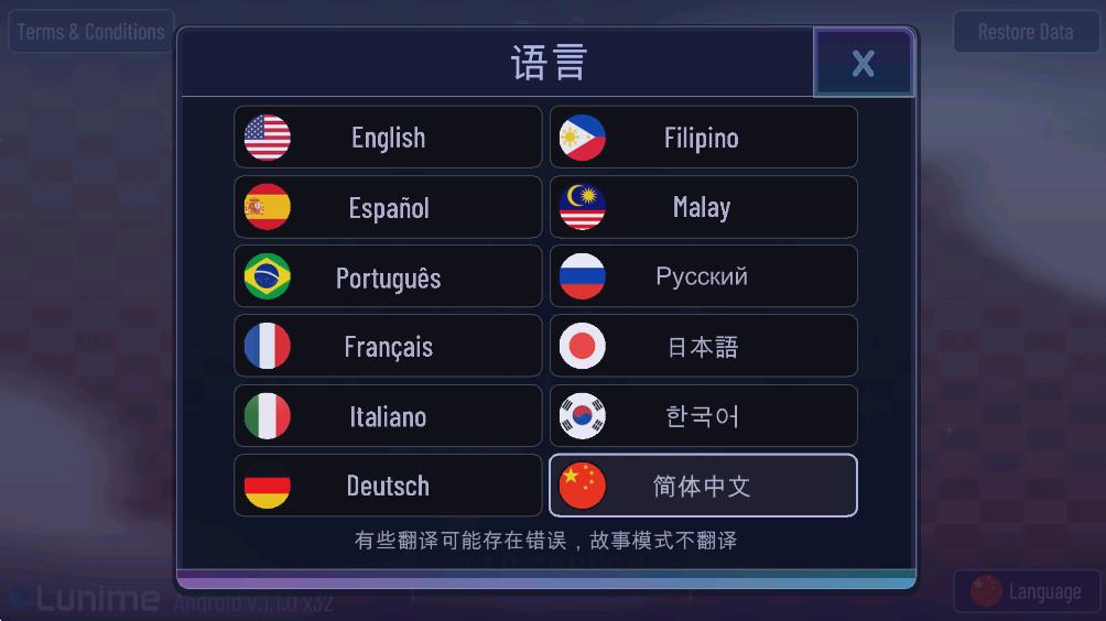 2.切换选择简体中文,点击“TAP SCREEN”开始游戏。
