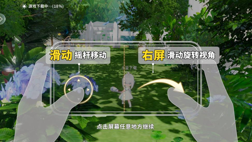 5.虚拟摇杆可以控制角色移动,左右滑动可以切换视角,我们点击屏幕继续