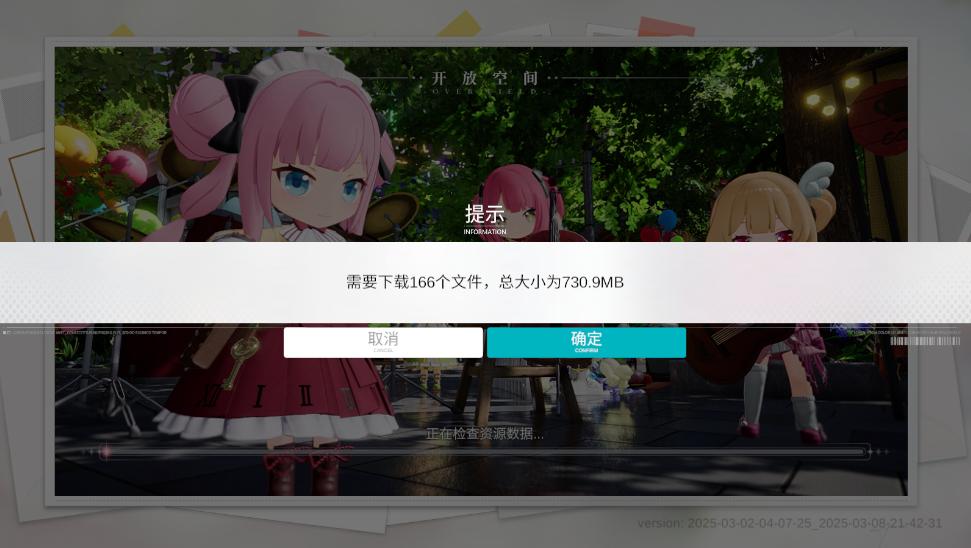 1.打开开放空间,首次运行游戏需要更新,我们点击确定