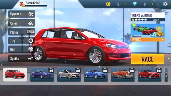 2.通过进入到车库里面选择自己喜欢的,再去选择比赛场地以及天气,选择好车道是单向还是双向,使用操控按键来驾驶汽车到达终点完成比赛获得胜利。