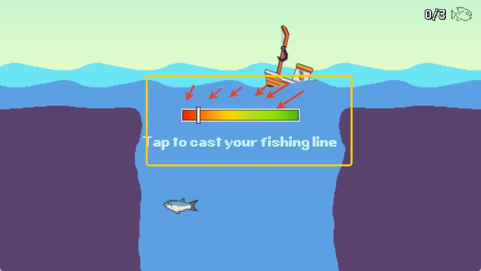 7.注意条的走动,越往左边你钓鱼的水深越深,钓到的鱼几率越大,反之越小。