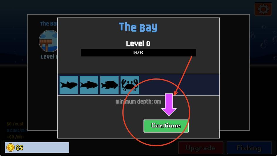5.点击continue即可进入到相关的地图钓鱼。