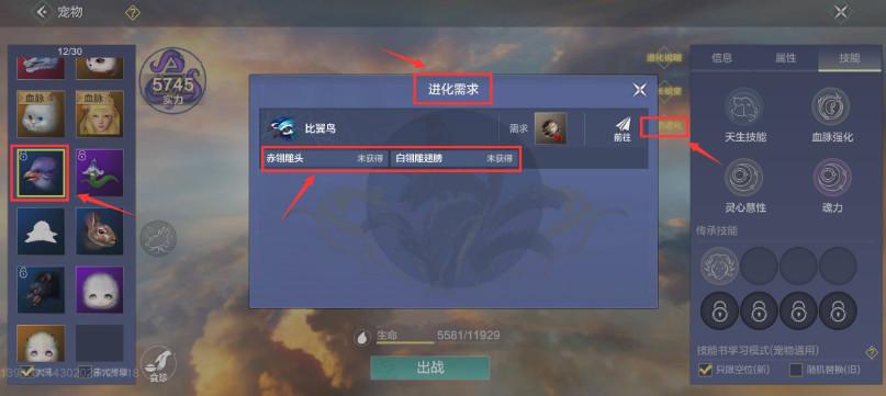 ①选定想要进化的宠物,
