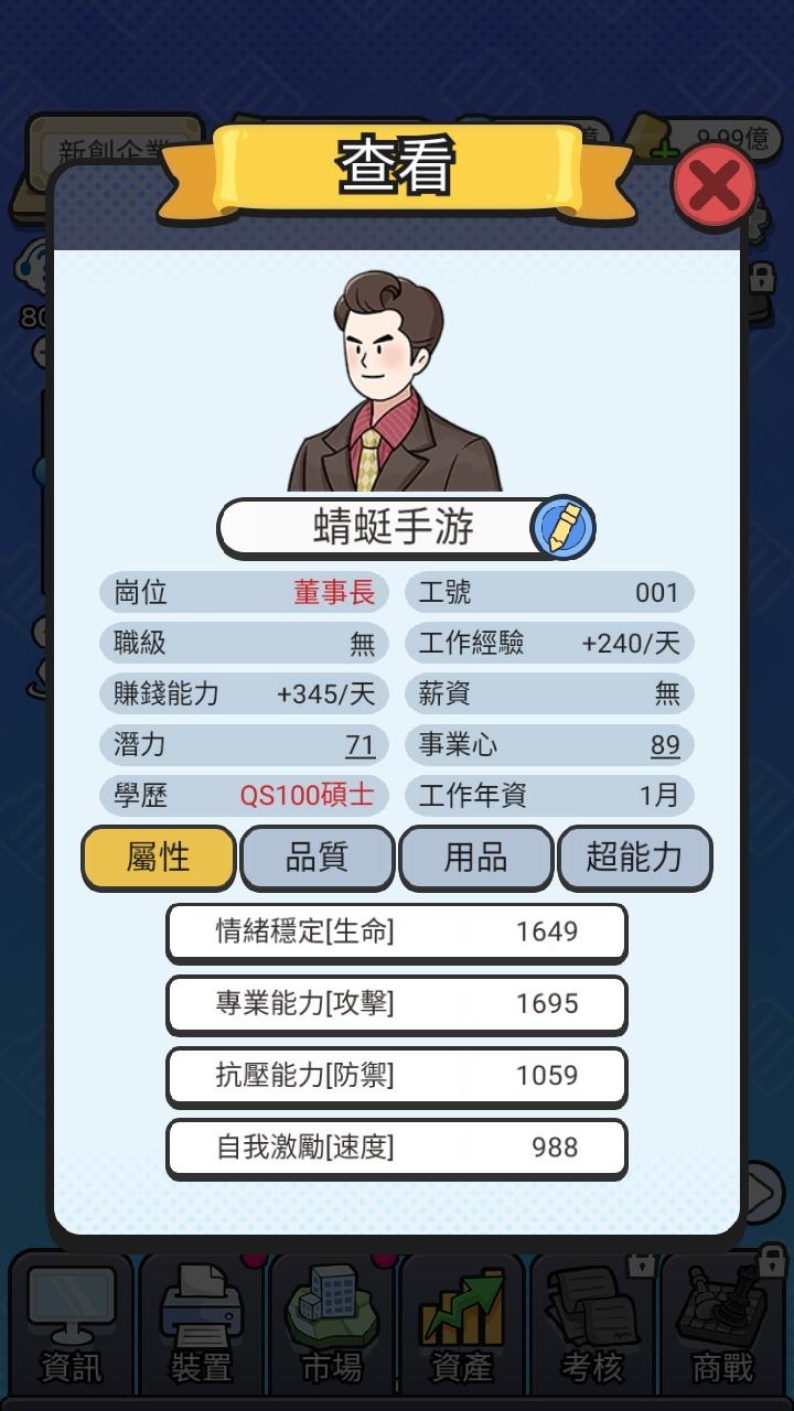 老板模拟器是一款高自由度的商业模拟经营手游。在游戏中,你将从白手起家,经营一家属於自己的公司,透过招募员工、研发产品、拓展市场、应对商战,逐步建立起自己的商业帝国。游戏以其真实的商业逻辑、多样化的投资决策和考验策略的竞争模式为特色,旨在提供沉浸式的创业体验。