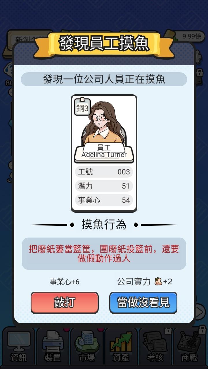 8.在模拟中还会出现各种随机事件比如员工摸鱼可以选择不同的处理方式。