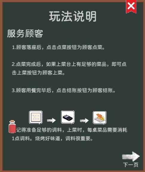 在烧烤食物的时候,把食物烤制成全熟状态——需要翻面的食物两面都要烤熟哦,放置到装盘区后,完美烤串的计数会增加一点,当计数达到指定数量后,会奖励一些小道具。