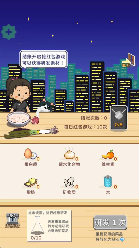 这六种元素,在游戏内可以在商店购买,也可以在红包小游戏内获得。每集齐六种元素,即可进行一次研发,获得游戏内的一种食物。