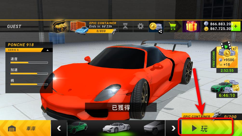 6.不断的路上超过对手,并会得到相应的积分,获得的积分会根据对手的实力不同而有差别,积分可以用来解锁配件。