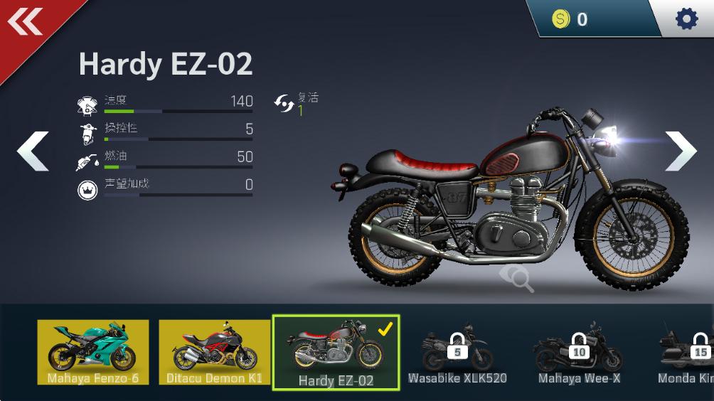 每次闯关之后都会有一些奖励和经验,等级提升之后玩家就可以解锁更多的摩托车,而奖励也可以用来买车和升级。