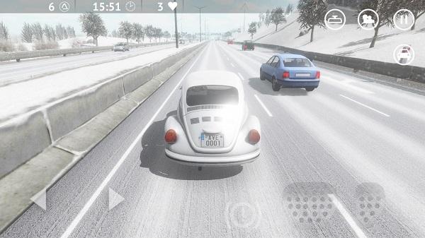 4、启动发动机,控制好转向,适当的深踩刹车,降低车速,避免碰撞。通过超车赢取积分,用于解锁并收藏其他车辆,其他模式也都各有特点,感兴趣的玩家可以逐一尝试,没有任何条件。