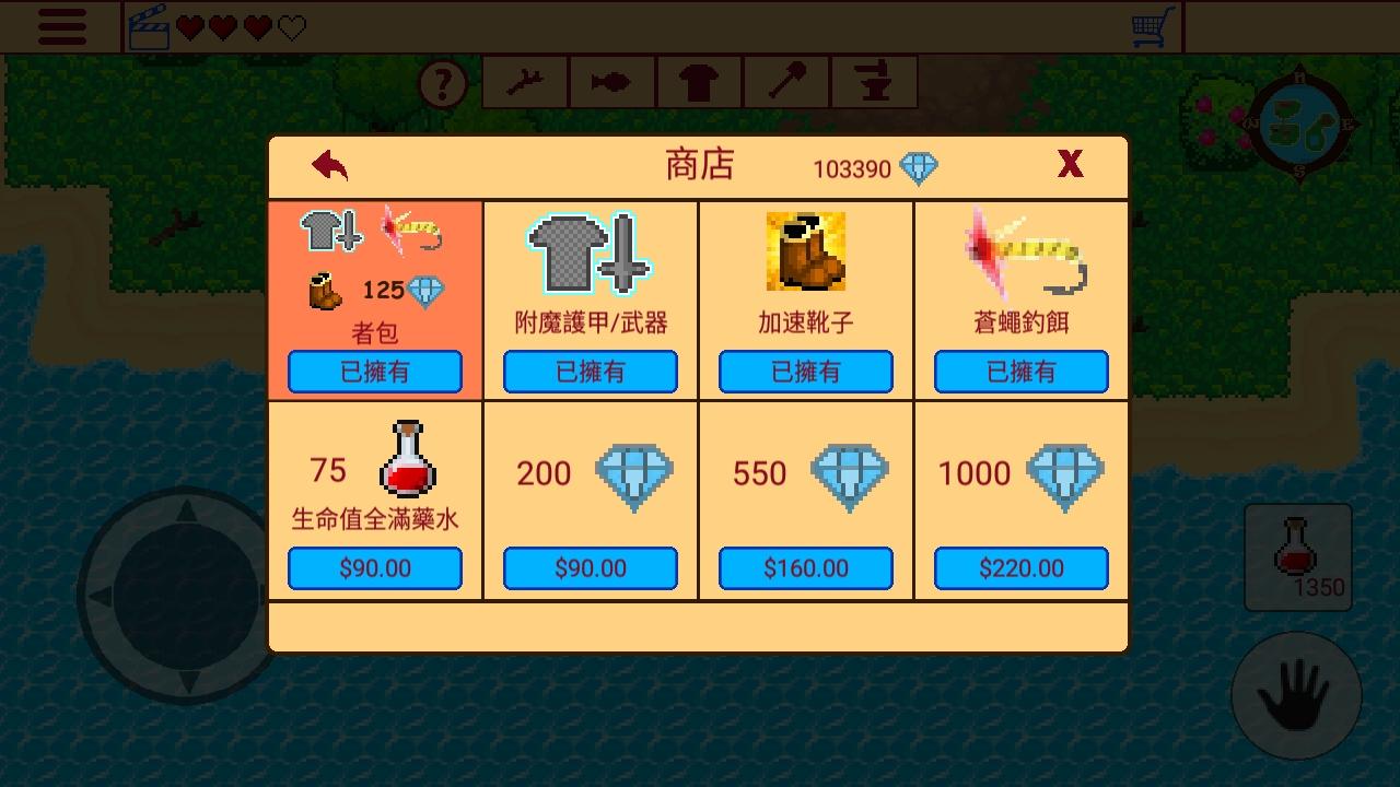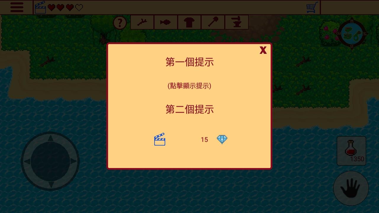 2.左下角为方向,右下角为拾取,对岛屿进行探索。