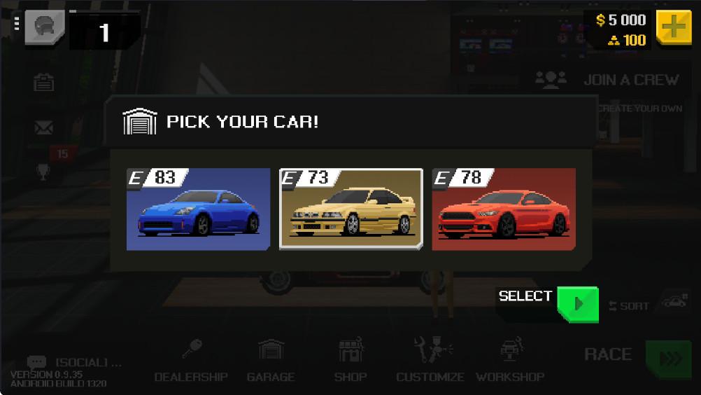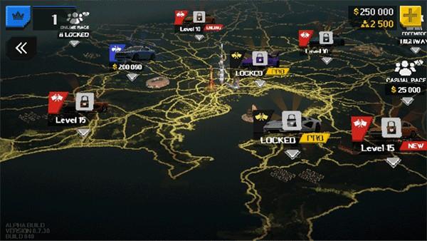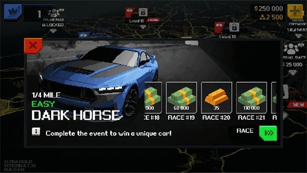 1.在游戏主页,可以进行车辆改装、换色、购买新车等操作,点击“Race”即可开始比赛车