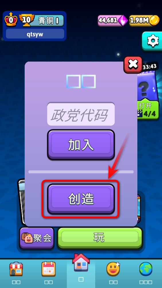 3.创建好了之后,让你的好友输入你的分享码,然后等待好友的加入即可。