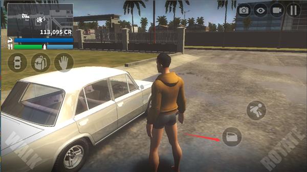 7.进入游戏我们需要控制人物去汽车旁边,点击开门;