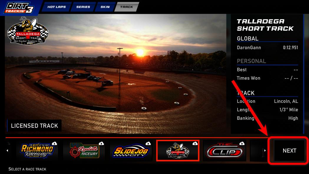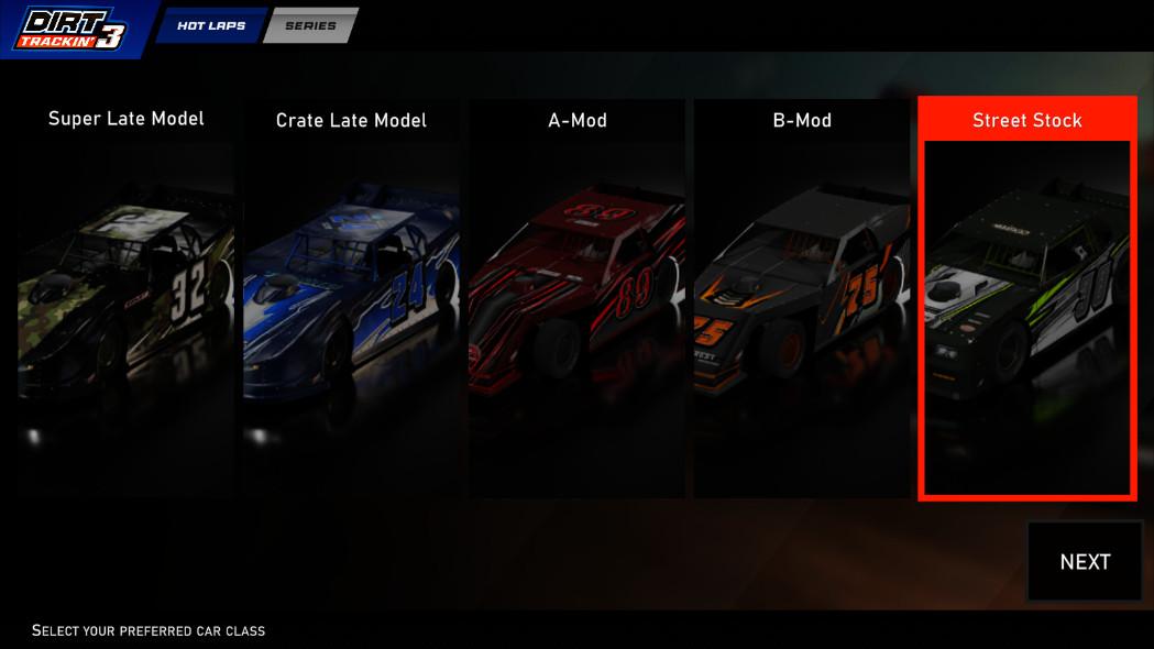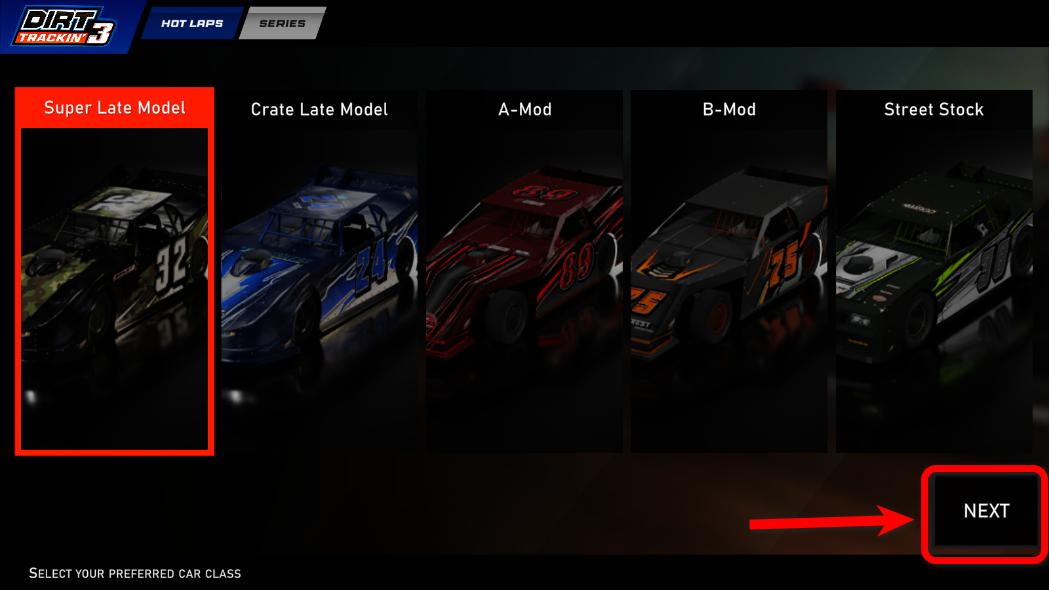 2.进入之后,首先选择你想进行游玩的车型,选择好之后点击NEXT。