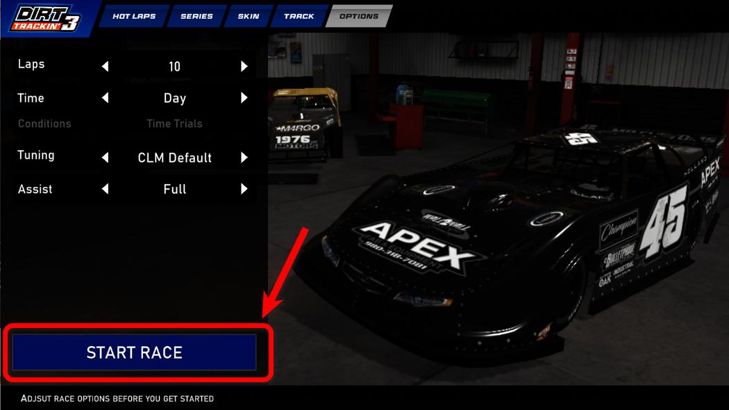 5.然后自定义修改一些关于比赛的信息,点击START RACE开始游戏。