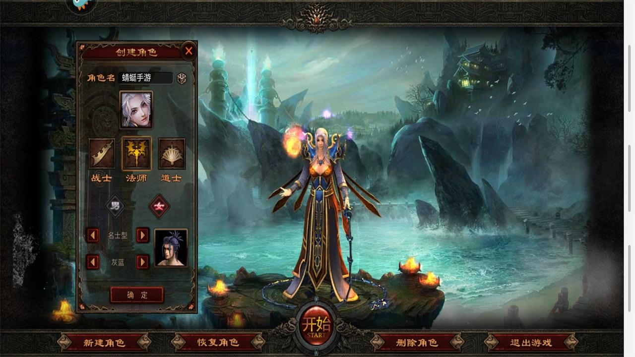 2.选择角色性别,职业,取一个好听的名字点击开始