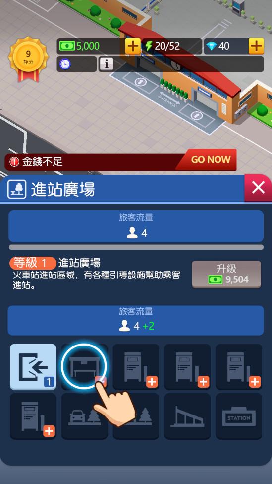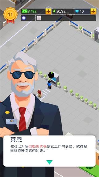 3、旅客前往火车站的第一件事就是需要购票,我们可以通过升级购票机,或者点击头顶计时器加快旅客购票速度。