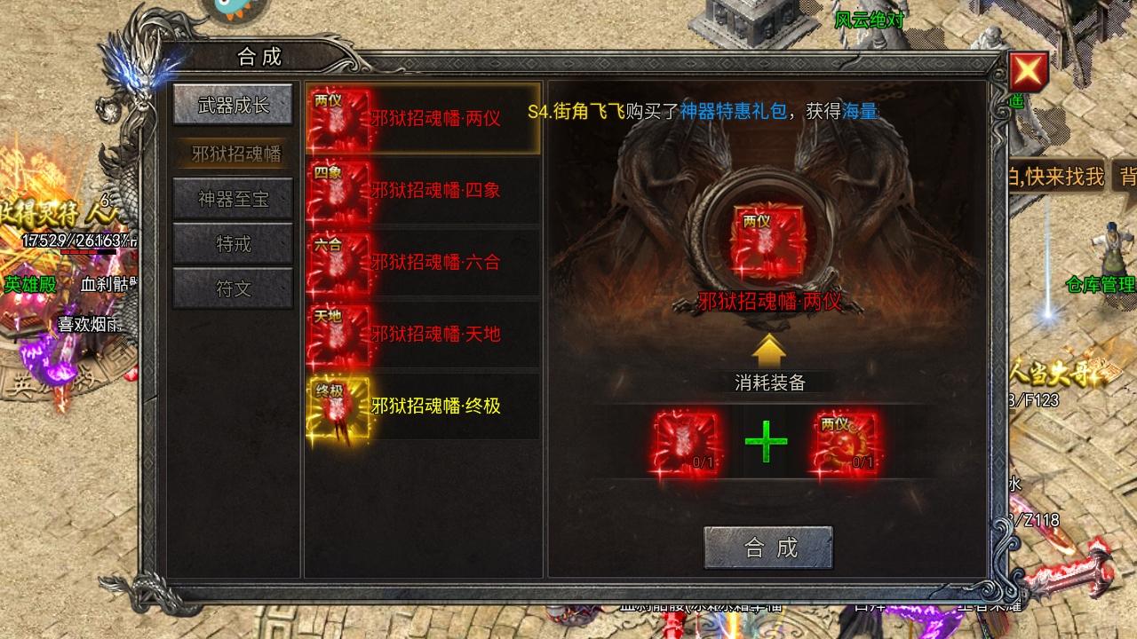 升级武魄和神器都需要用到传奇币,熔炼装备是获得传奇币的重要方式方式。前期熔炼装备与古宝-射日弓有冲突,此时不是很缺传奇币的玩家可以先不熔炼装备。在游戏后期传奇币较为紧缺,神器-武魂提升至20级后每提升5级可有传奇币礼包,也可以通过熔炼低品质或者多余的装备来获取更多的传奇币。